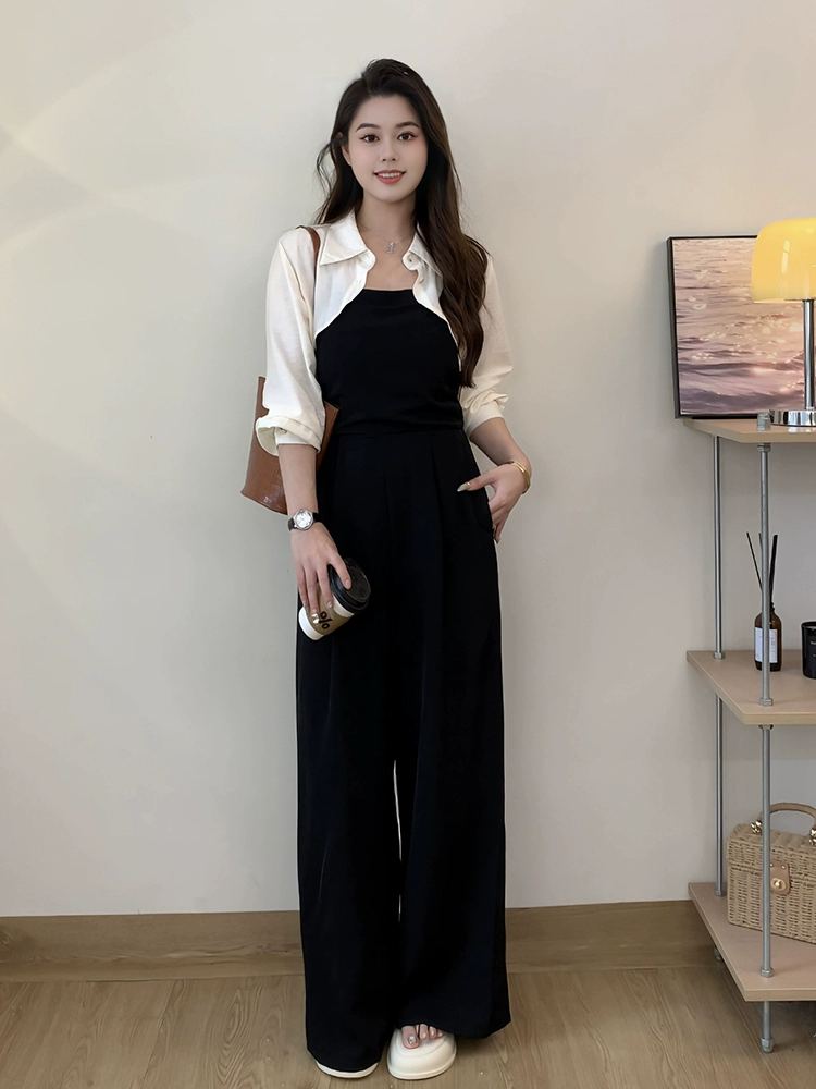 法式小众清新衬衫开衫女吊带连体裤外穿别致修身显瘦套装 quantity
