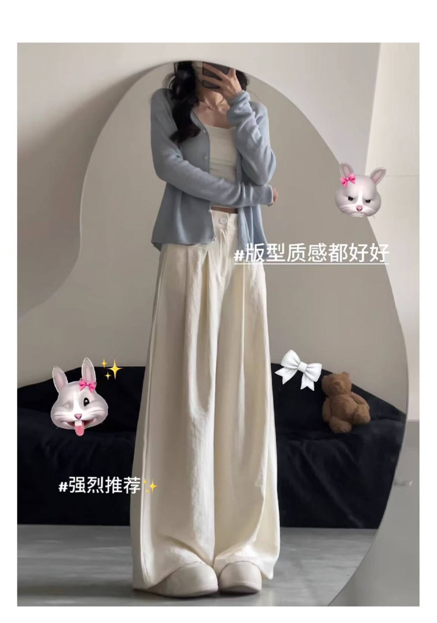 白色阔腿裤女高腰垂感小个子直筒裤慵懒西装裤 quantity
