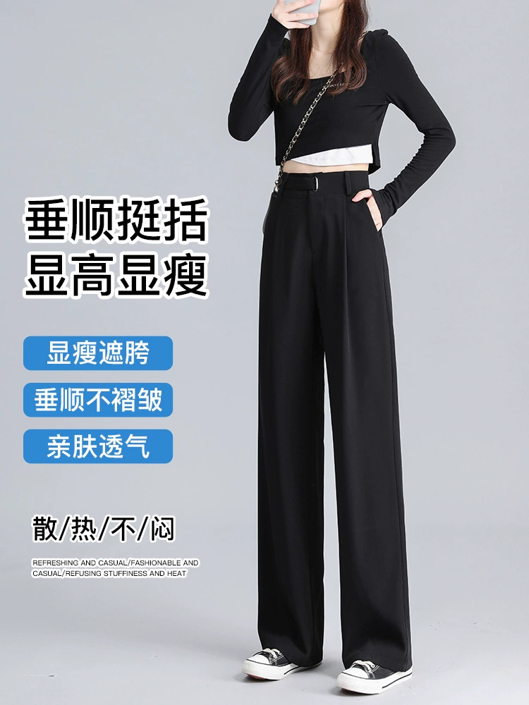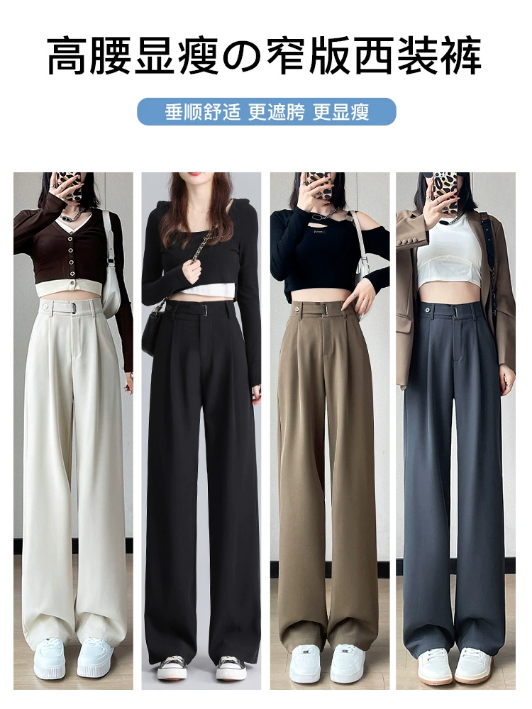 西装裤新款高腰垂感显瘦拖地长裤休闲直筒阔腿裤子