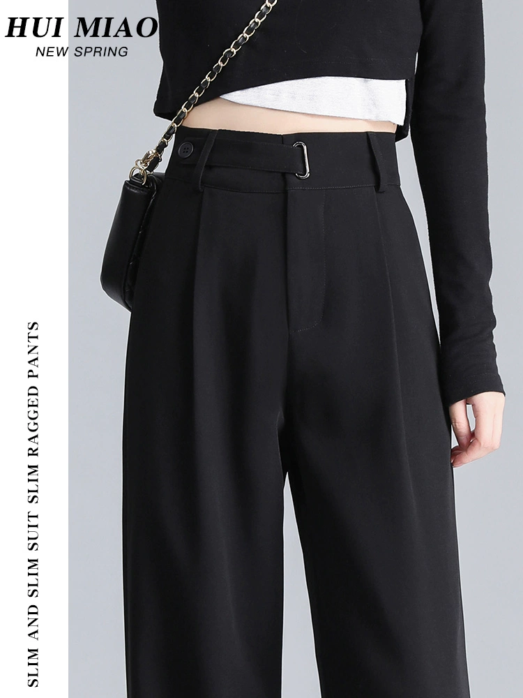休闲窄版高级感垂感黑色直筒阔腿西装裤 quantity