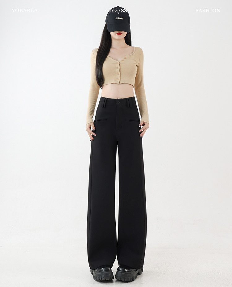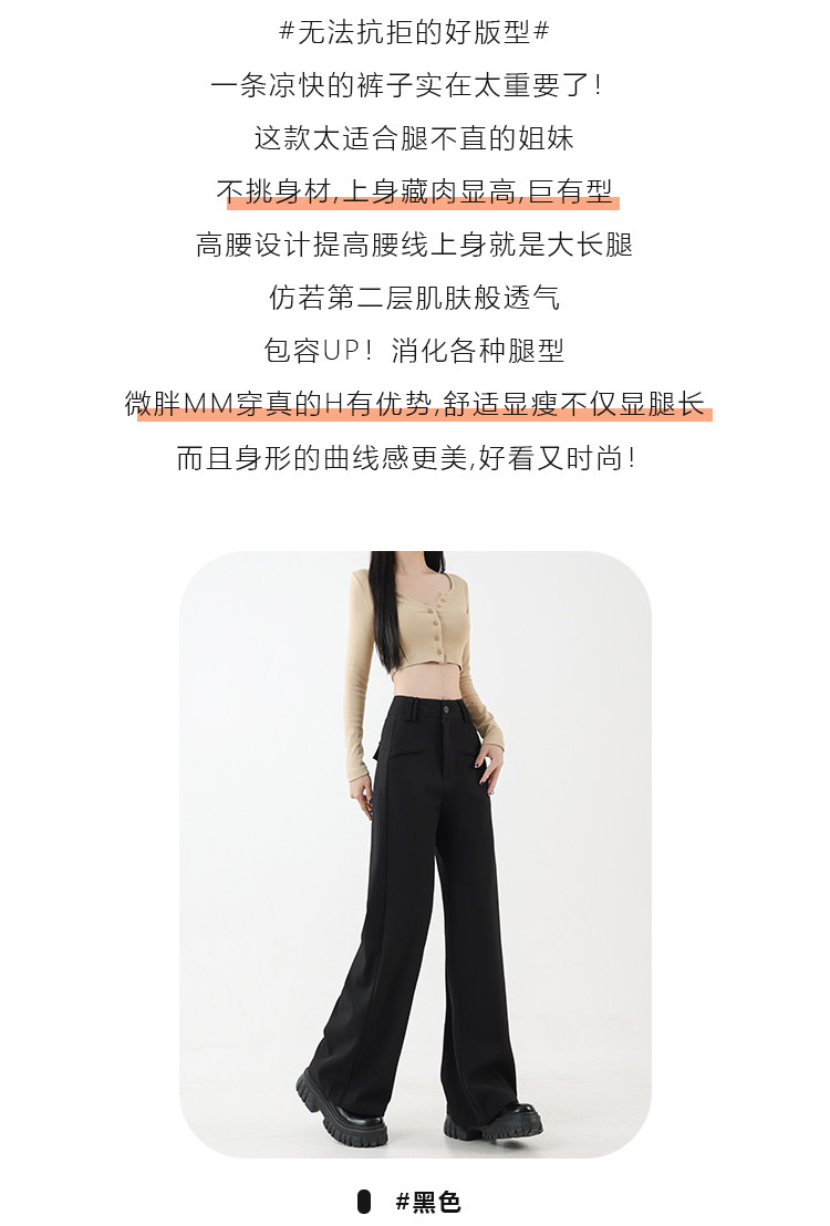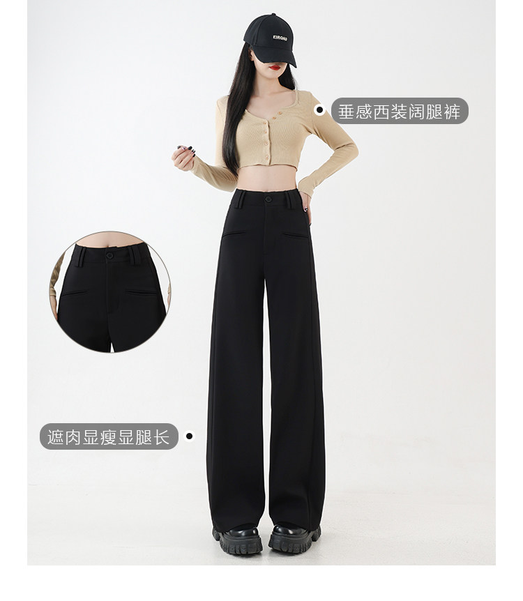 黑色休闲西装裤大码胖mm宽松显瘦梨形身材阔腿裤子 quantity