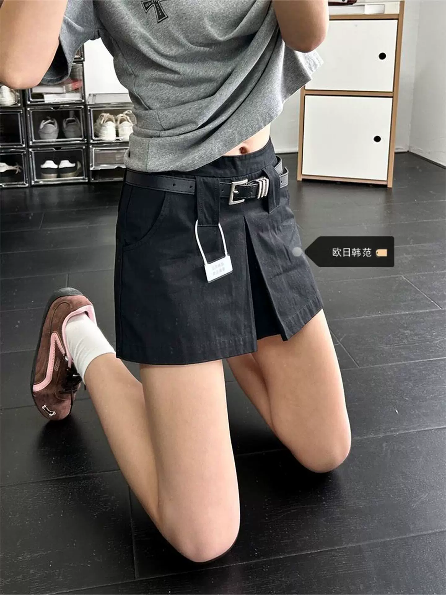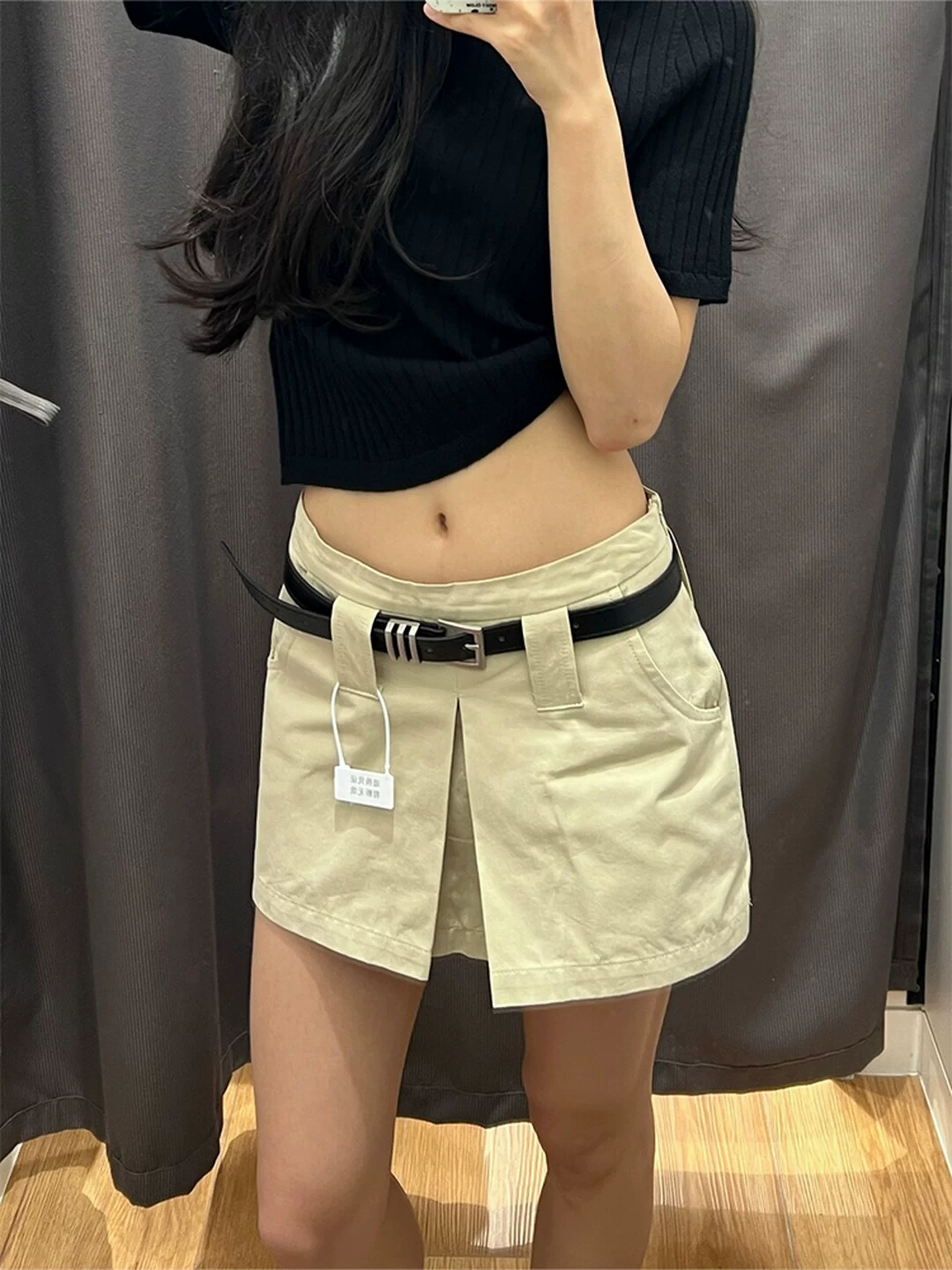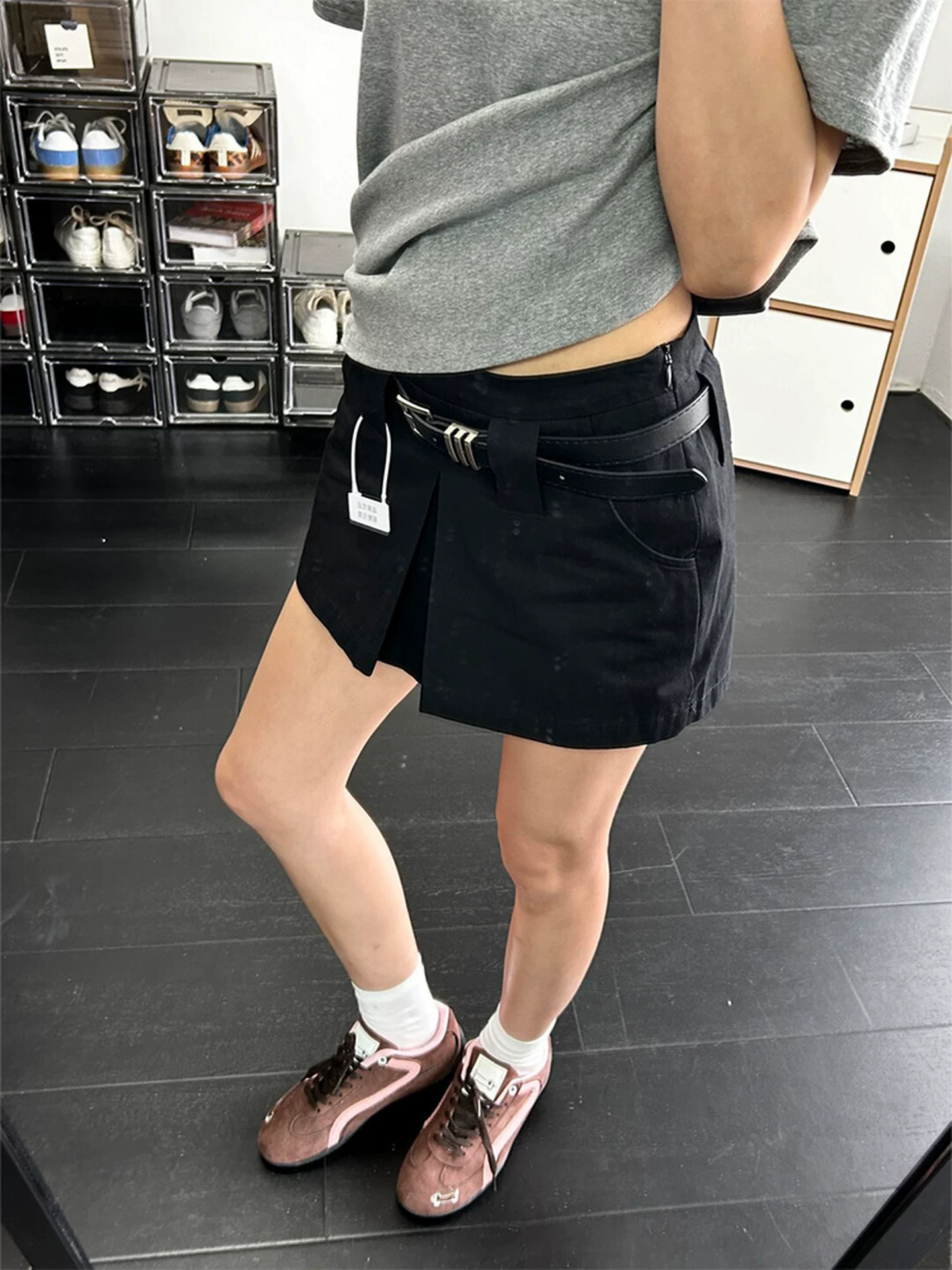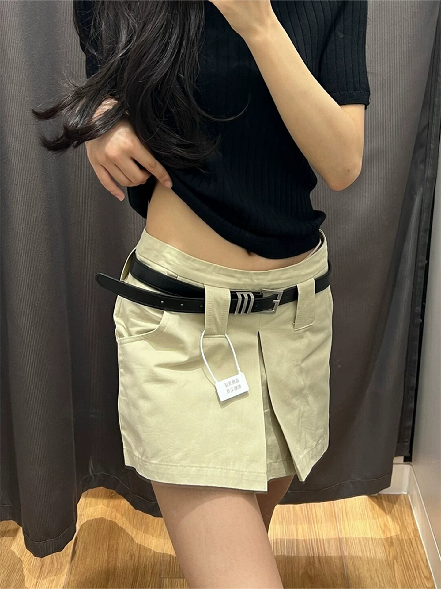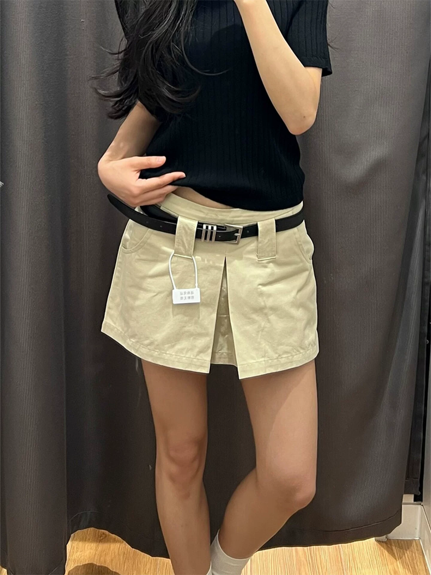 大码压褶开叉慵懒感半身裙新款低腰通勤小众潮流A字裙短裤裙 quantity