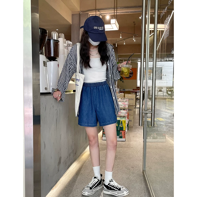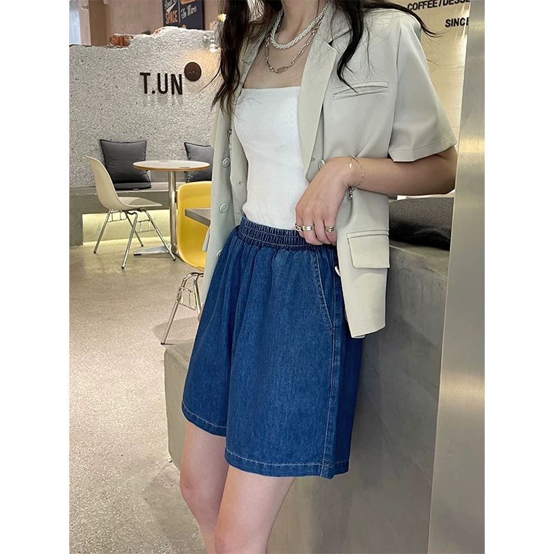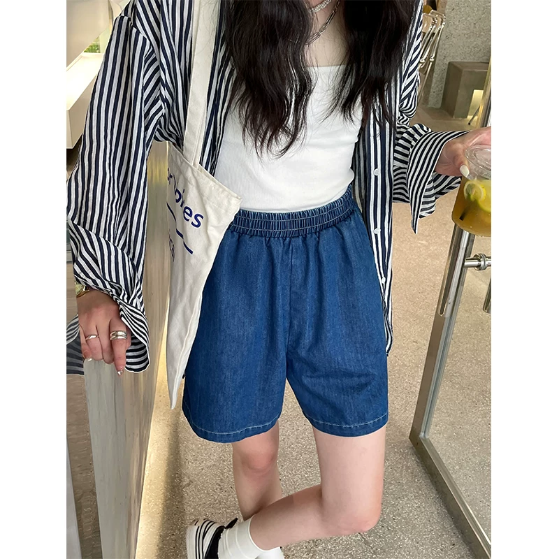 夏季薄款松紧腰牛仔短裤