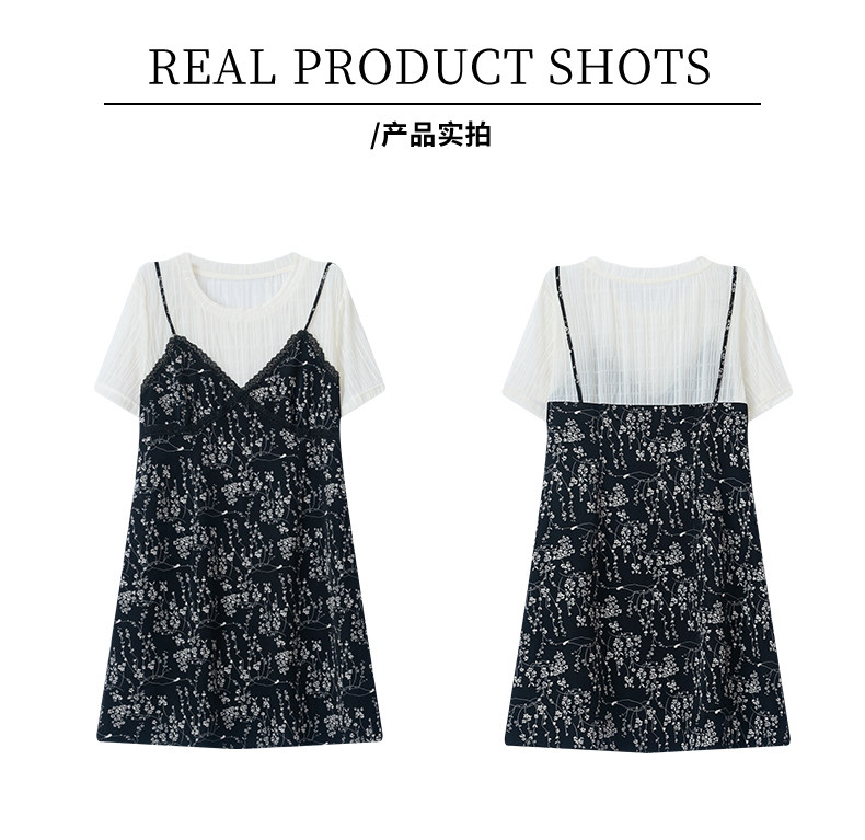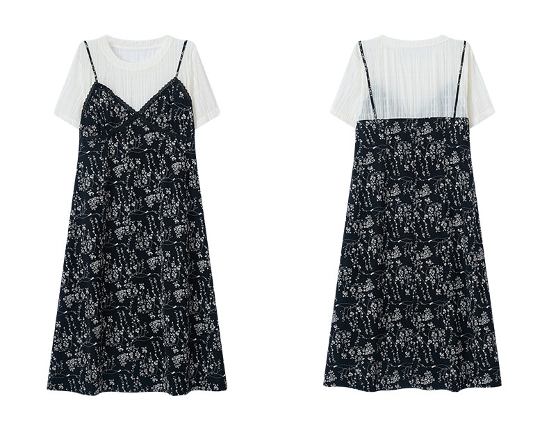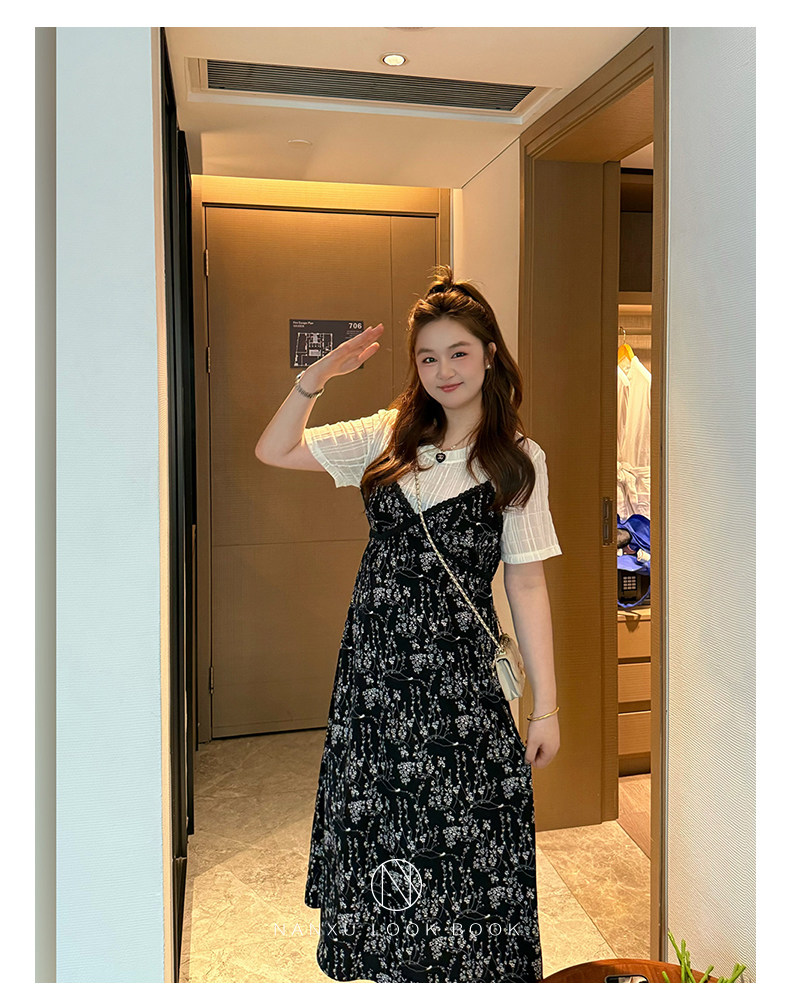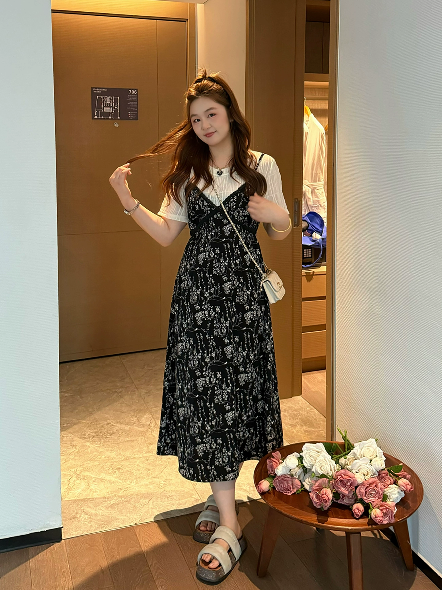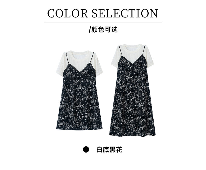 气质百搭黑天鹅连衣裙 假两件高腰拼接时尚设计款 方领显瘦长裙