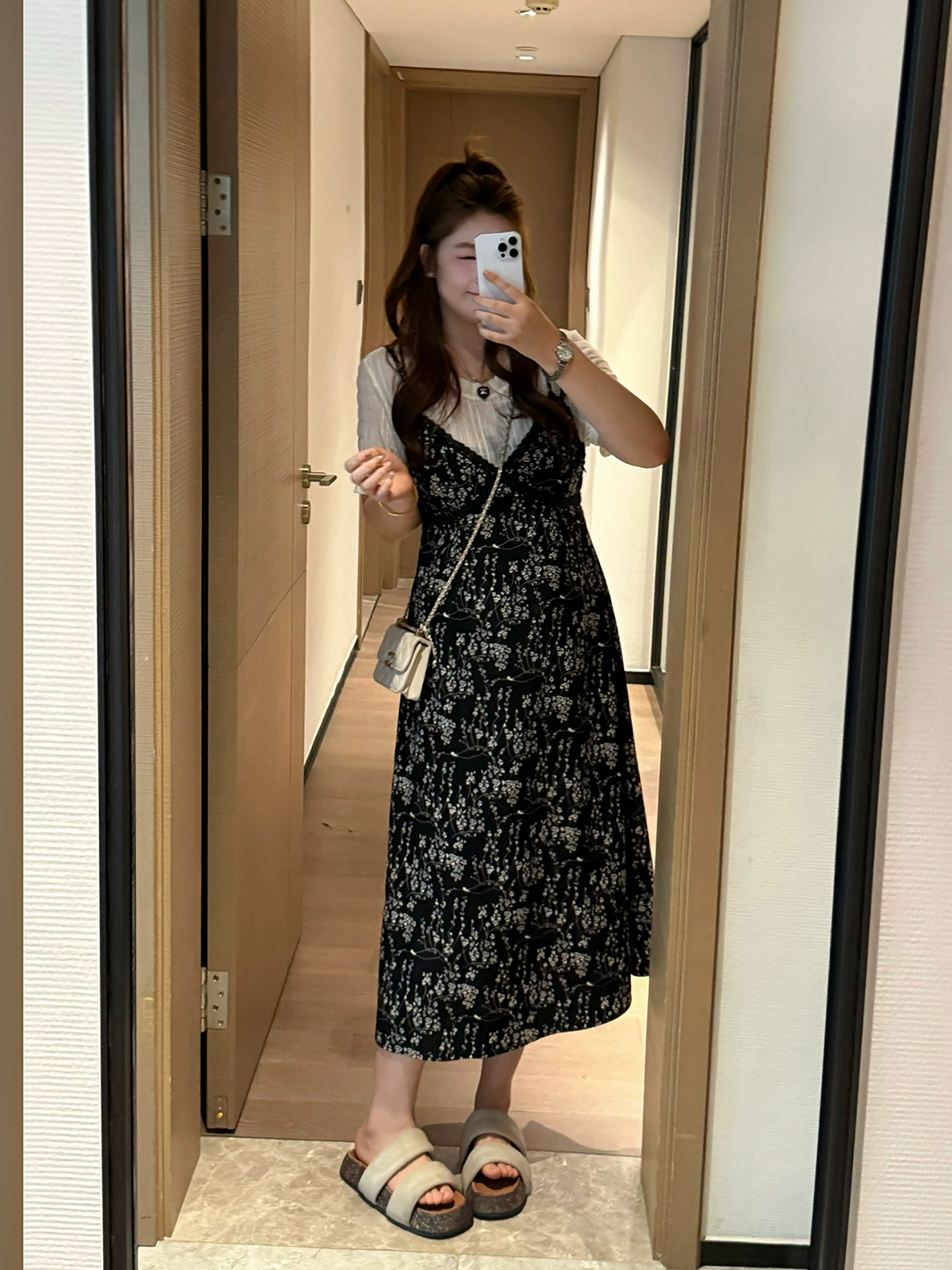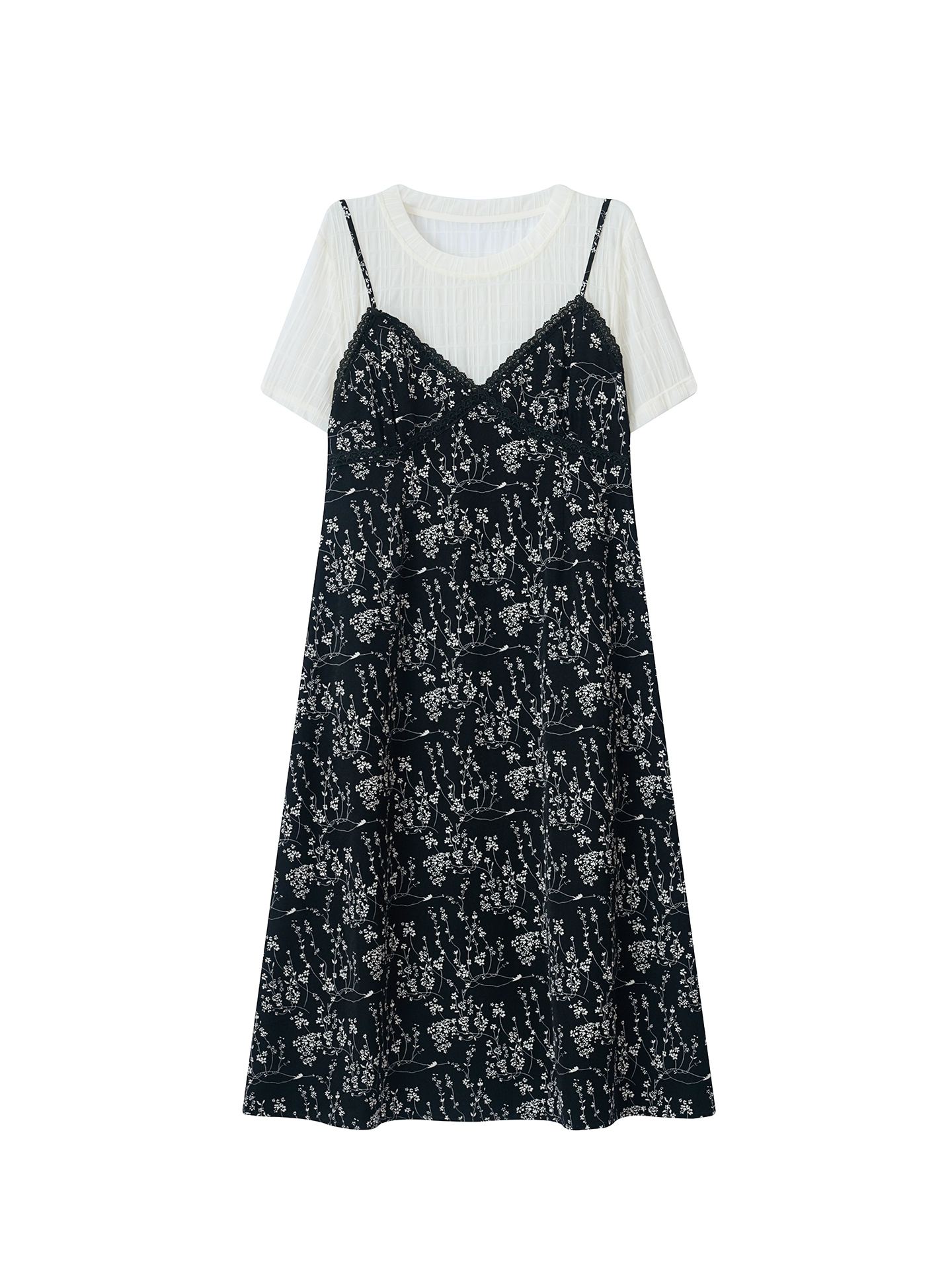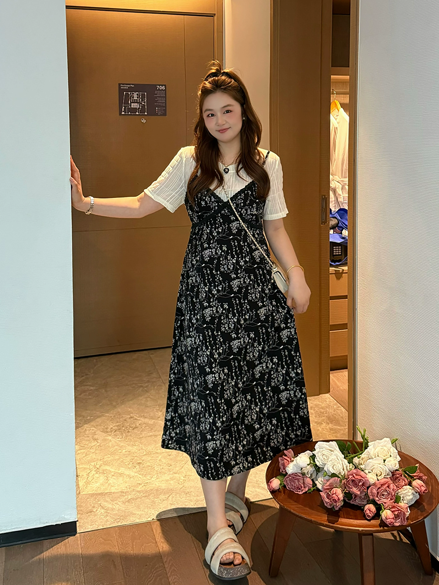 气质百搭黑天鹅连衣裙 假两件高腰拼接时尚设计款 方领显瘦长裙