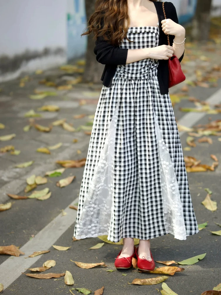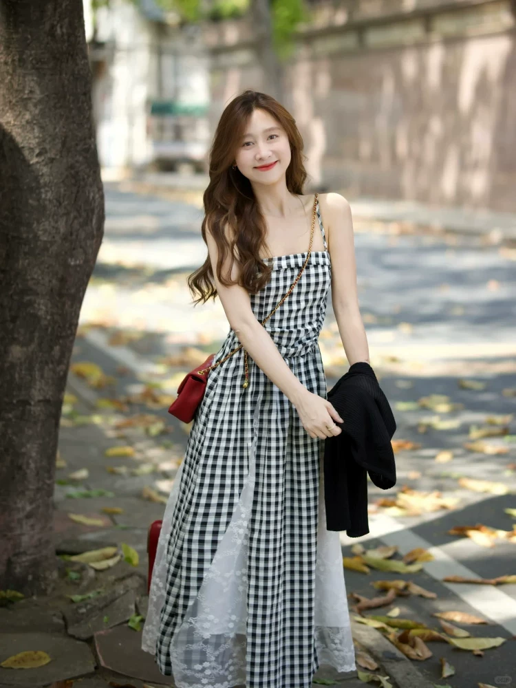 格子吊带裙