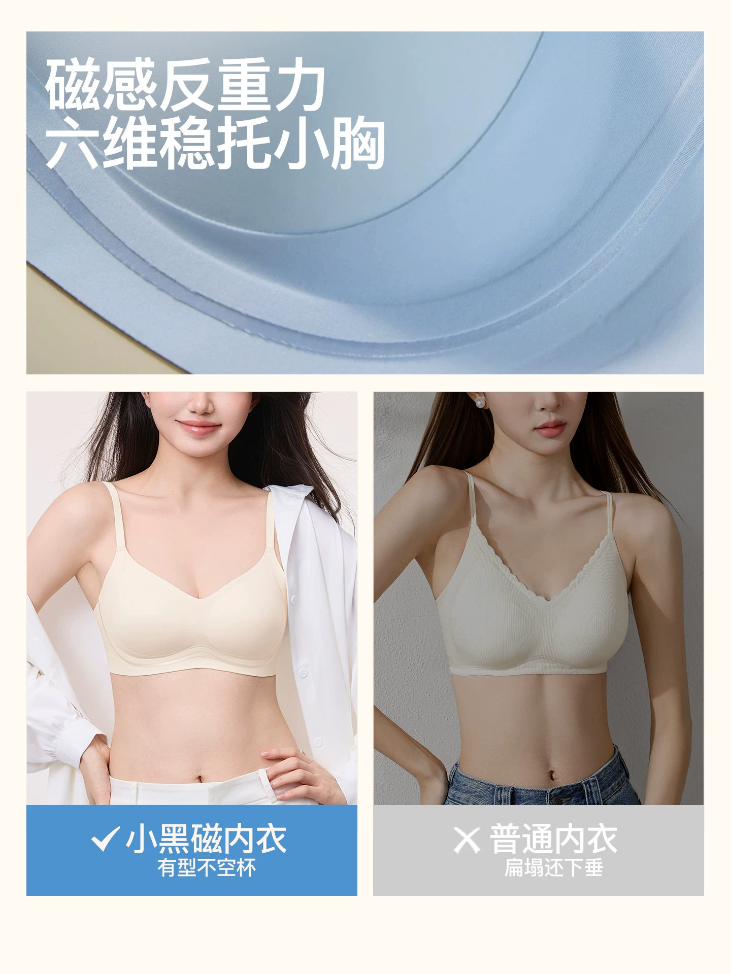 都市丽人小黑磁粉底液内衣女小胸聚拢收副乳文胸舒适