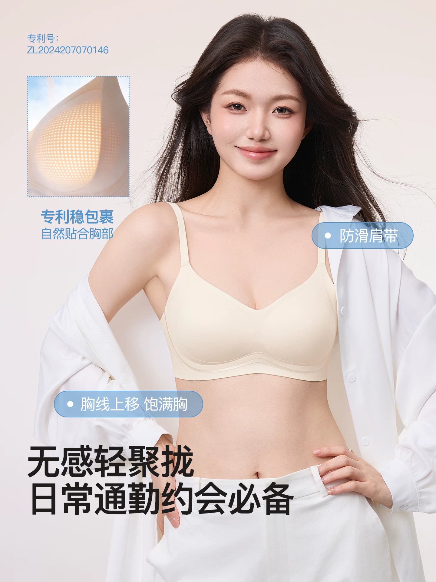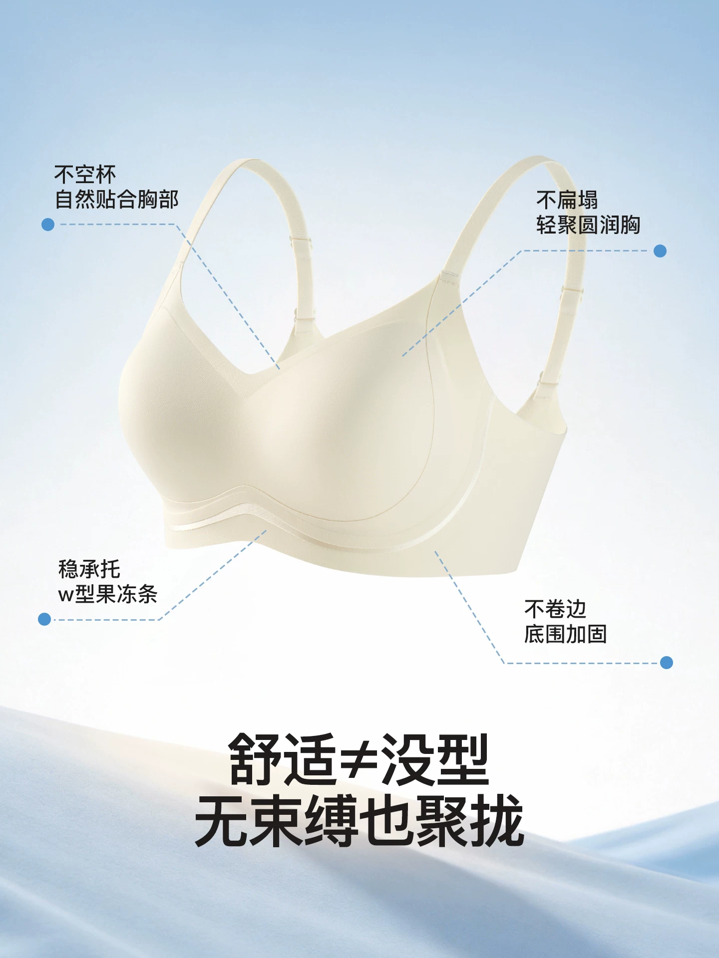 无痕云感裸感内衣女小胸聚拢上托防下垂软支撑无钢圈收副乳文胸罩